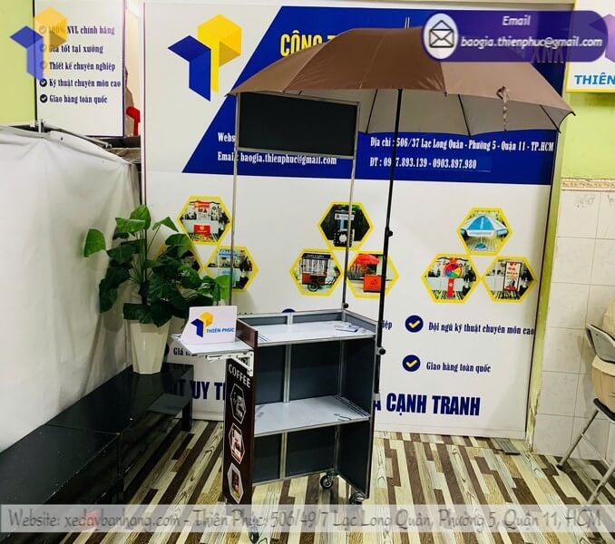 Xe bán coffee kèm ô dù che - Gọi ngay Thiên Phúc để tư vấn chi tiết