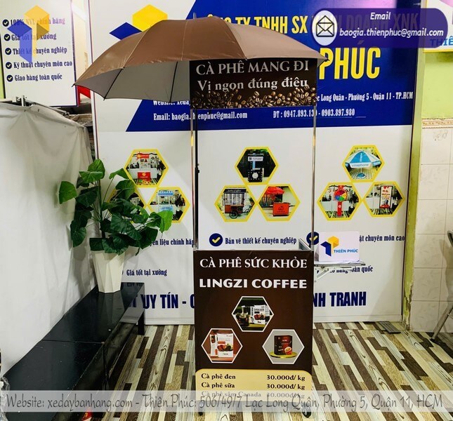 Tên Sản Phẩm: Xe bán coffee kèm ô dù che in logo LINGZI COFFEE
